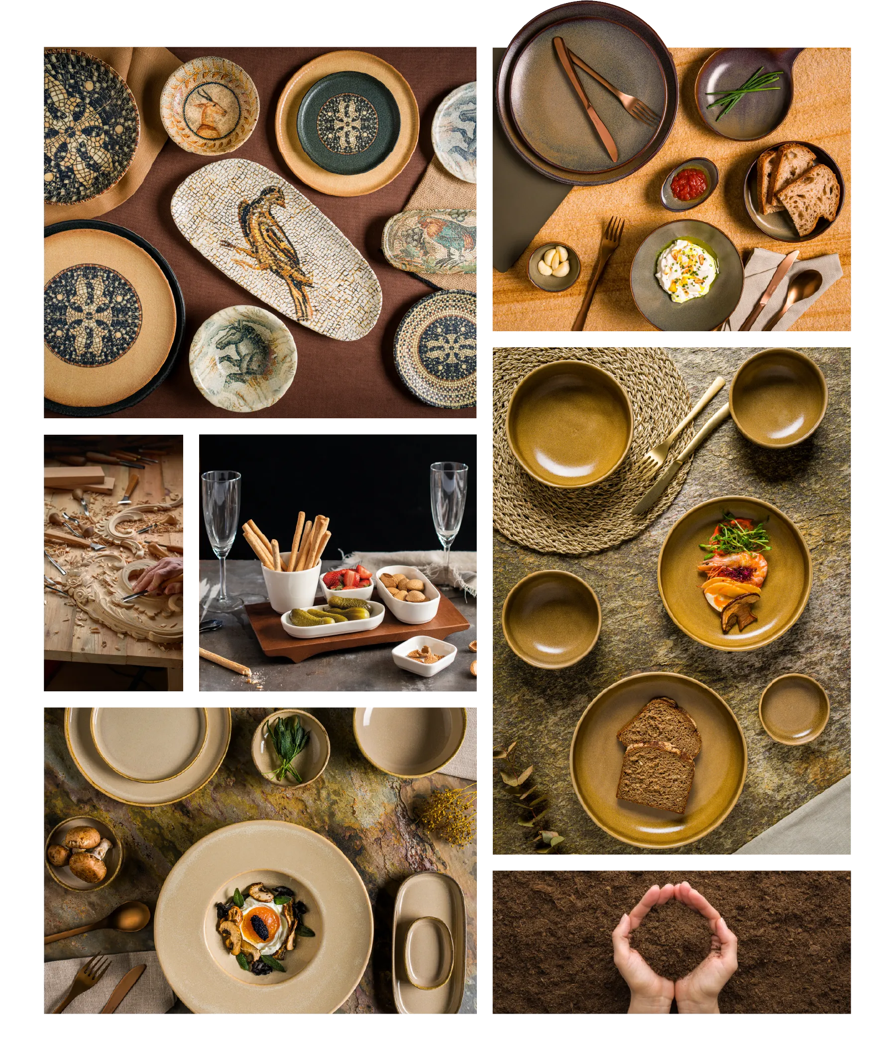 Earthen Rustic koleksiyonları, profesyonel mutfaklarda şeflere doğal ve rustik sunumlar için ilham verir. Earthern Rustic koleksiyonlarıyla şimdi sunumlarınıza doğal bir zarafet katma vakti!