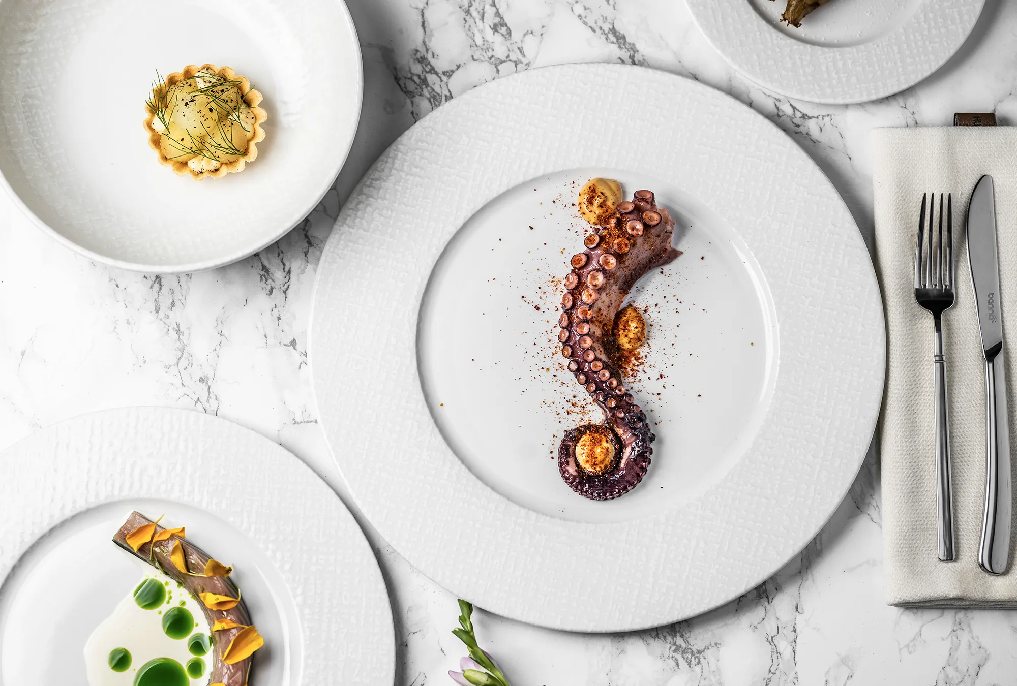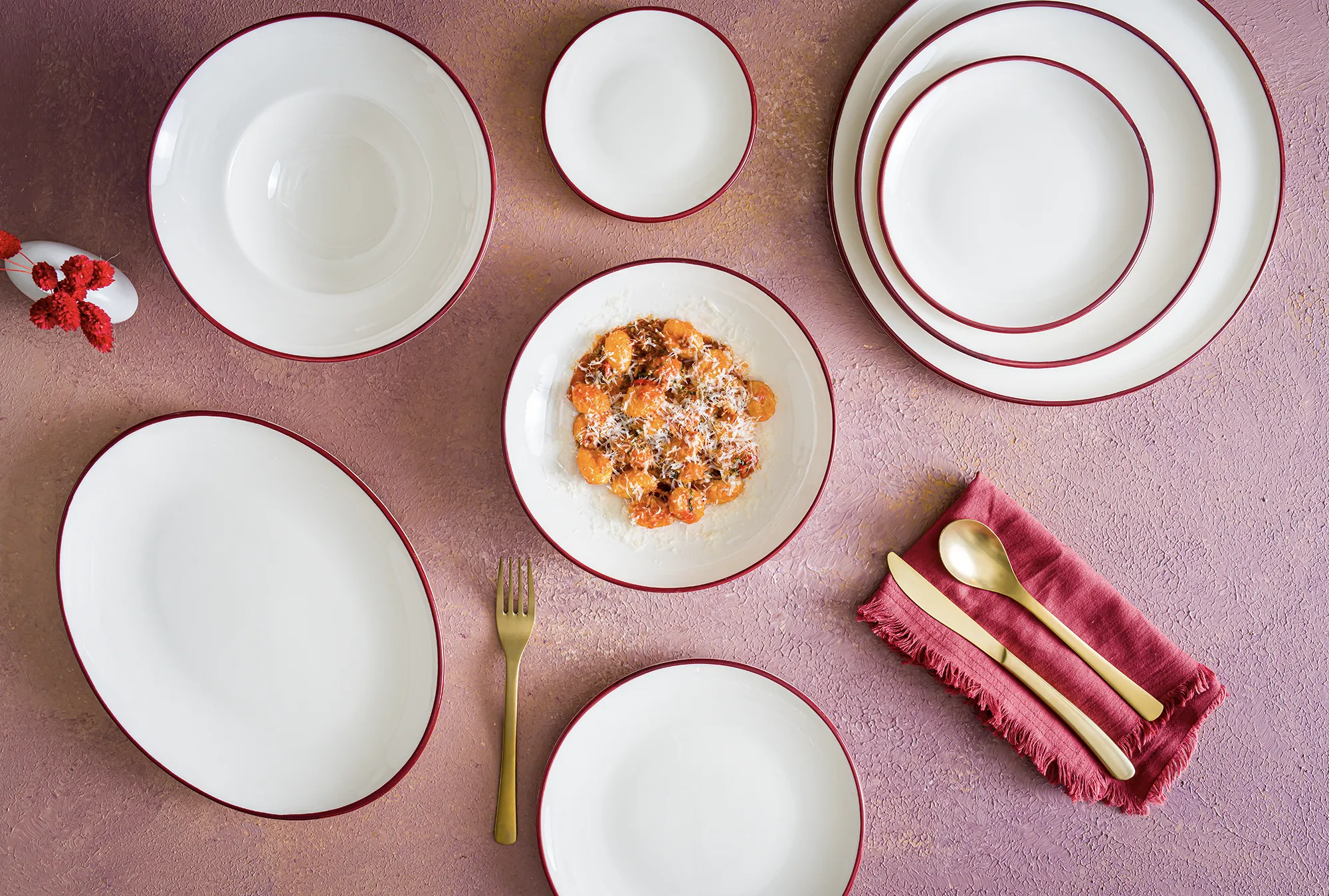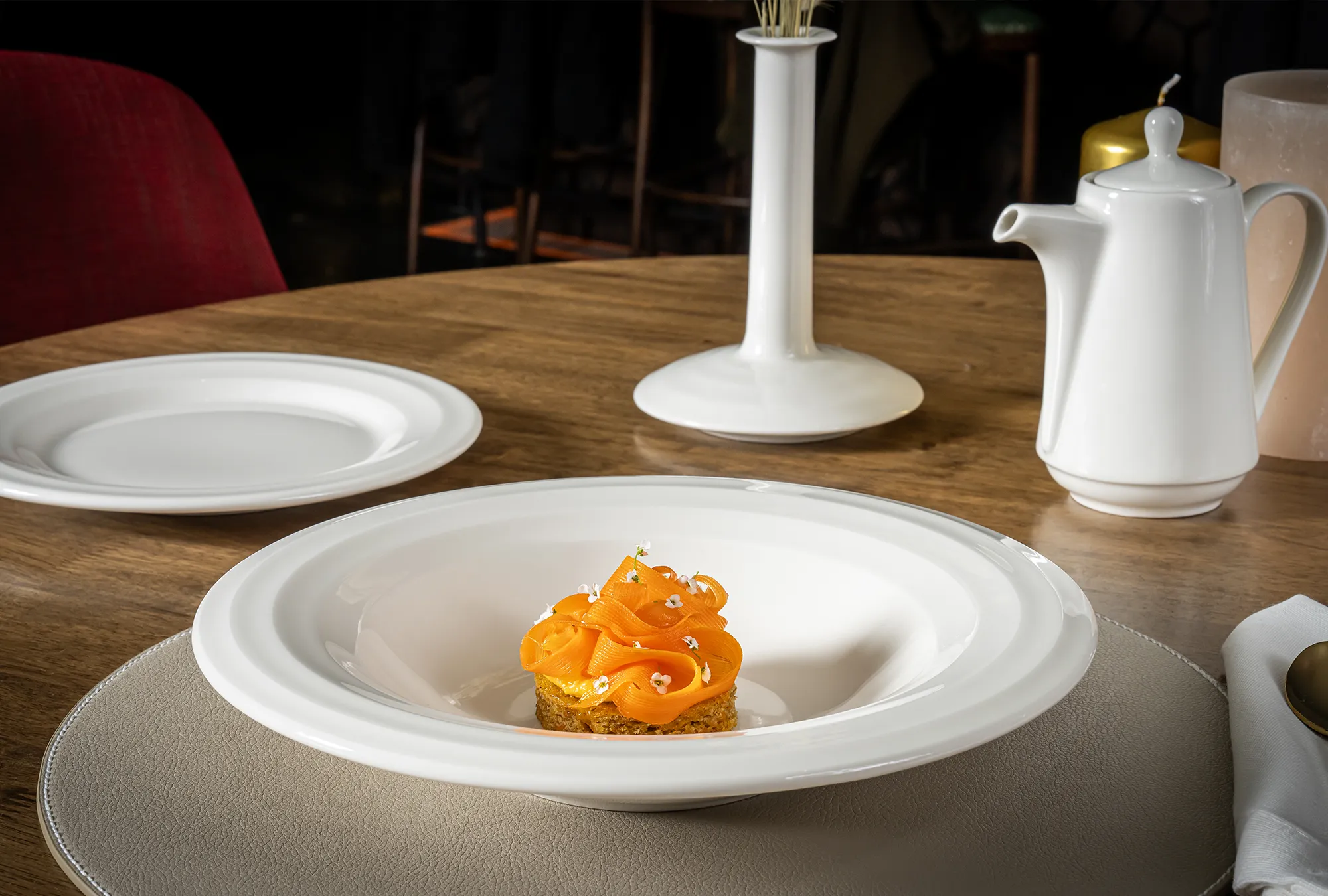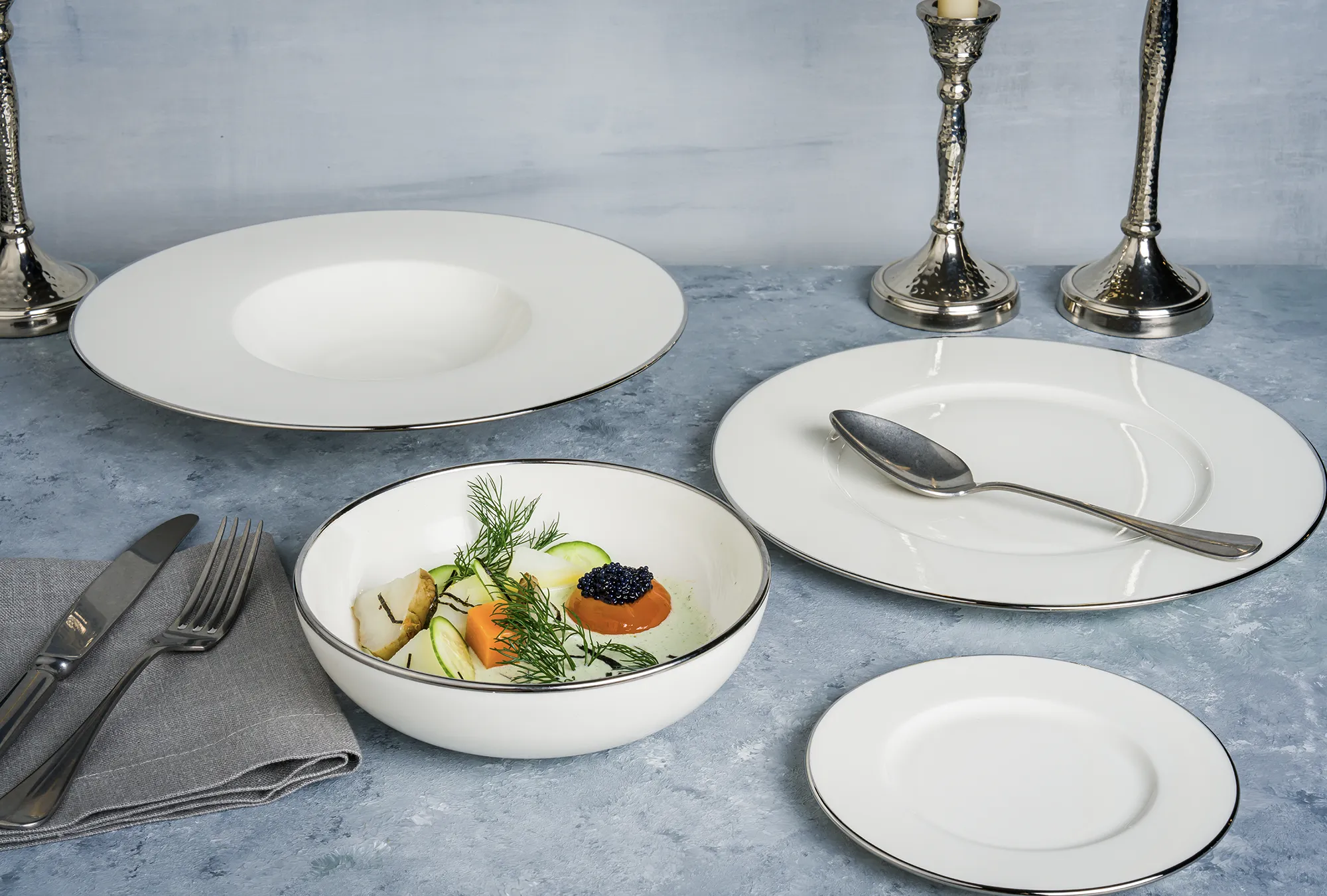 Essential White, beyaz ve kırık beyaz tonlarında zarif porselen tabaklarını bir araya getirerek yemeklerin ön plana çıkmasını sağlıyor.