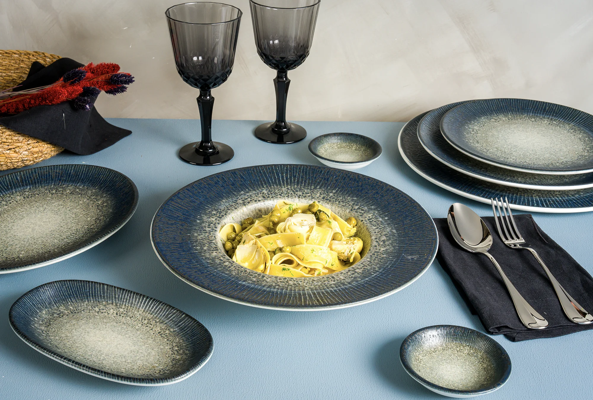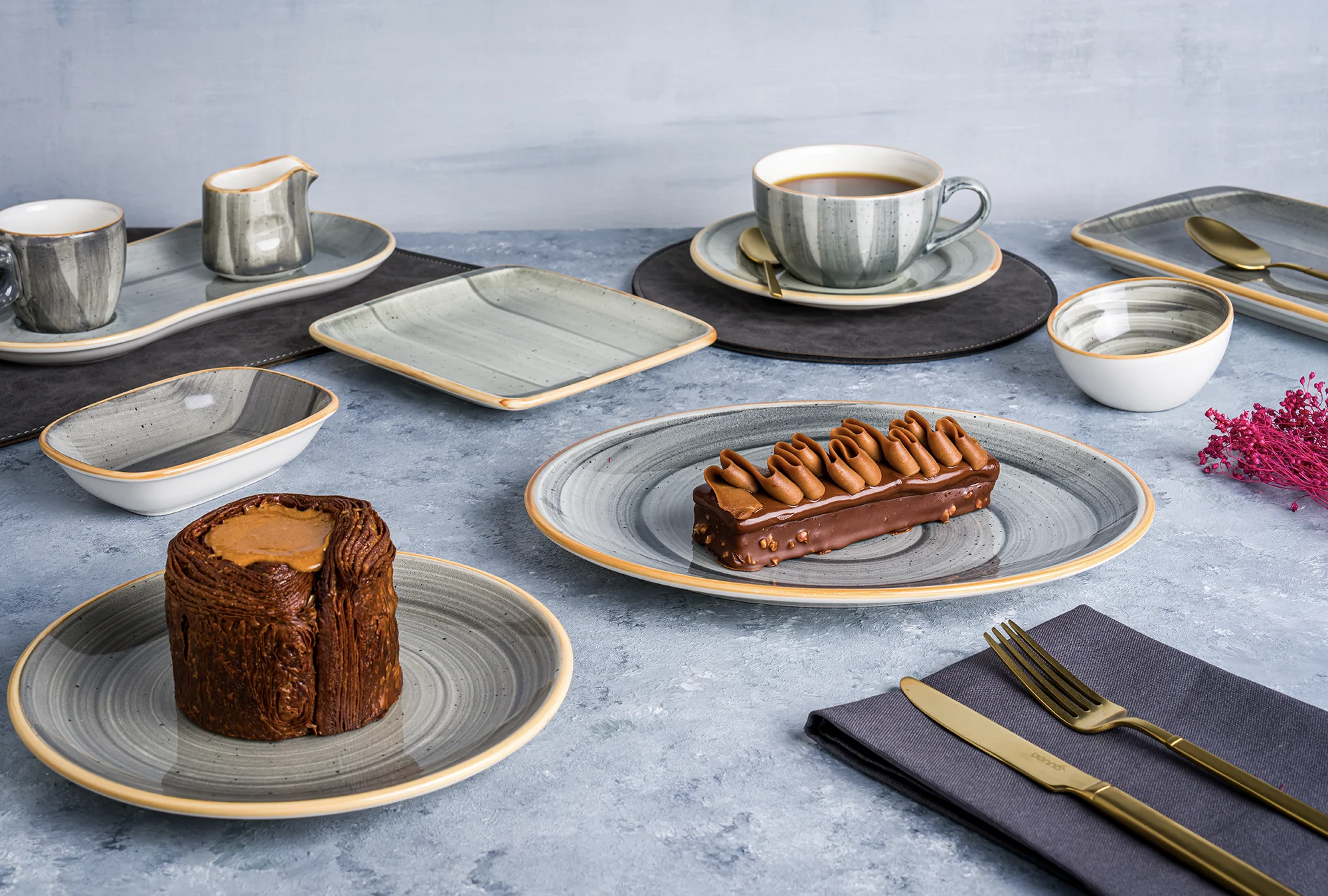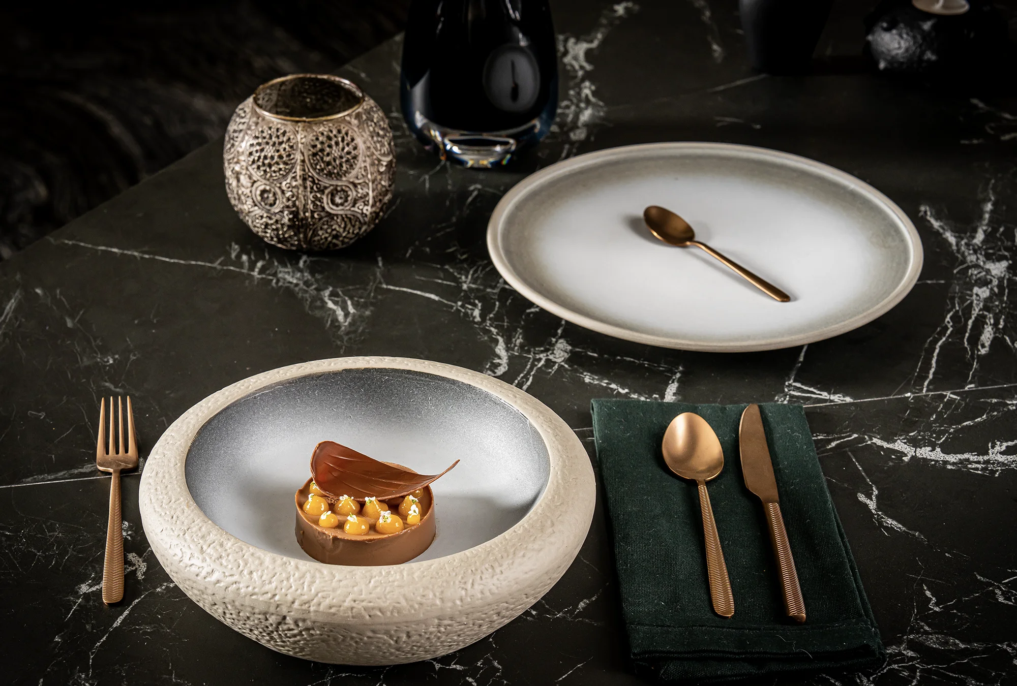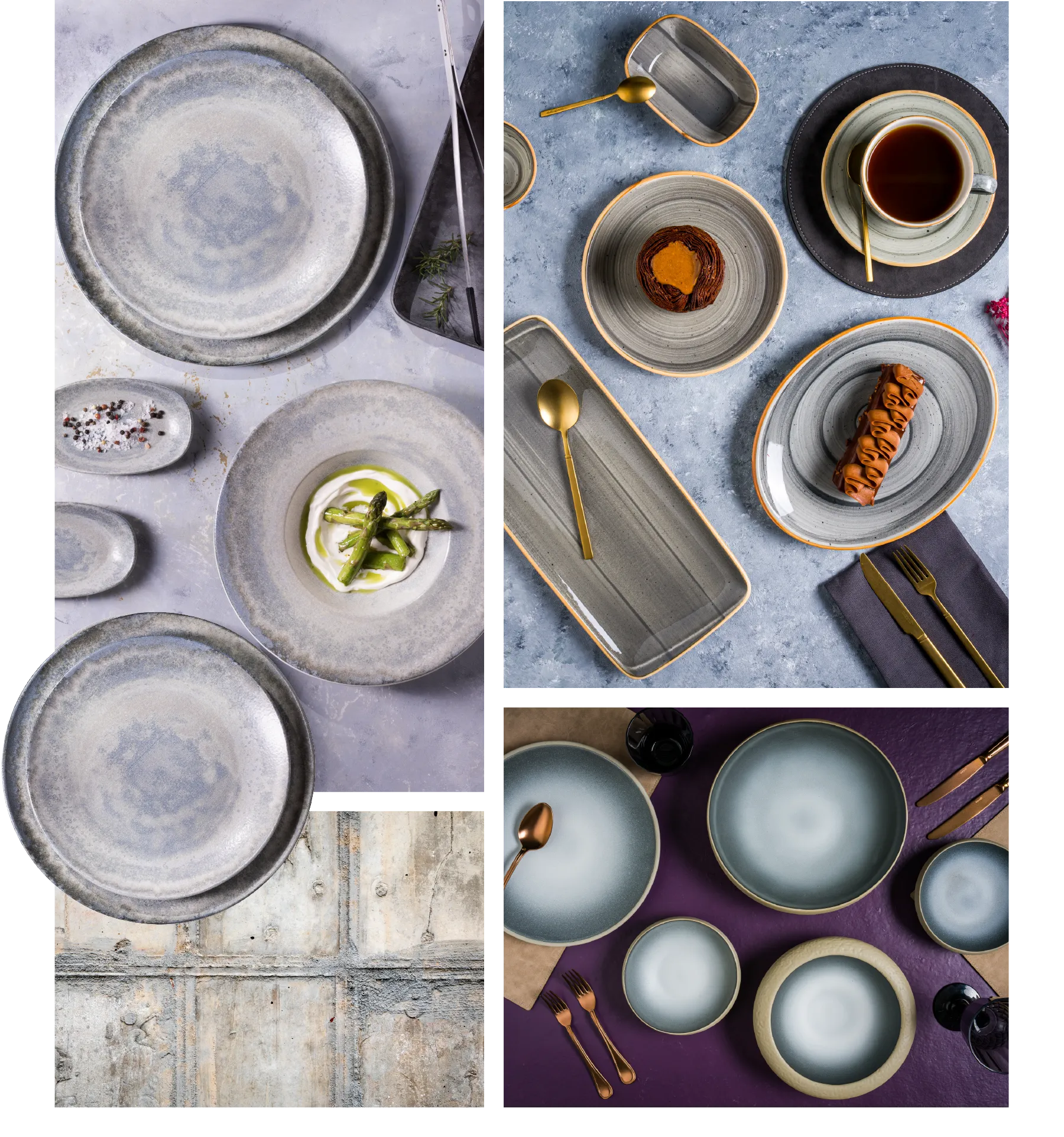 Koleksiyonlar, endüstriyel tasarımın keskin hatlarını yumuşak tonlarla harmanlayarak göz alıcı bir kontrast sunuyor. Betonun sertliğini, metallerin soğuk zarafetini ve modern mimarinin belirgin çizgilerini sofralara yansıtarak, mekanlarınıza şehirli bir zarafet kazandırıyor. Robust Luxury, modern restoranlar ve oteller için mükemmel bir seçimdir ve misafirlerinize unutulmaz bir deneyim sunarak, endüstriyel tasarımın sofistike güzelliğini yansıtır.